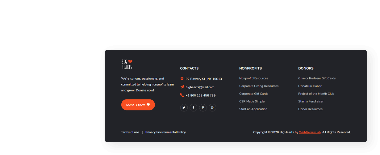Instantly create your pages just by adding your content to those pre-made inner pages such as About Us, Our Services, Our Team, Donation…